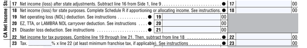 Should you chase this difference. Probably no. But you have an explanation to put, because at some point, someone is going to try to tie out your CA NOL balance back to the return and ask you why it doesn’t match. Especially if this is a start up with deep, many year layers of NOLs in the millions for each state. So make a note on your deferred schedule next to the DTA for NOL and get ahead of this concern.