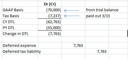 Thinking about tax basis can be confusing, so consider this: if I was to go back and create a set of books on tax basis, I would assume my current year vacation accrual at 12/31 year end could only be comprised of what was actually deductible for 12/31. This is only the portion paid within 2.5 months of 12/31. The rest, for tax purposes, hasn’t yet occurred. That is because even though we may be an accrual basis tax payer, when it comes to accrued vacation 404(a)(5) puts us on the cash basis for all except the 2.5 month payment.